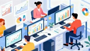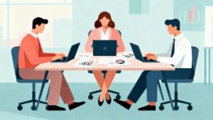オフィスでノートパソコンやデスクトップパソコンに向かって作業を行うビジネスシーンをフラットベクターで描いたイラスト素材をご紹介します。ミニマルでスタイリッシュなフラットデザインは、ビジネス系の記事、IT関連の資料、教育コンテンツ、企業の広報物など、さまざまな用途で使える汎用性の高いフリー画像です。無料で利用できるフリー素材でありながら、商用利用可能なため、会社案内やプレゼン資料などの正式な制作物にも安心して活用できます。イラストはベクター形式で制作されているため、サイズ調整や色変更などの編集がしやすく、自社デザインに合わせたアレンジも容易です。PC業務、デスクワーク、生産性向上、ITツールの利用などをテーマにする記事や資料に特におすすめで、視覚的にわかりやすい表現として役立ちます。