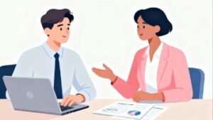 オフィスのデスクで、スタッフ同士がコミュニケーションを取りながら仕事をする様子を描いたフラットベクター素材です。現代の働き方において重視される「対話」「協力」「チームワーク」を視覚的にわかりやすく表現しており、ビジネス系コンテンツのイメージとして非常に使いやすいデザインです。当サイトで配布するイラストはすべて無料のフリー素材であり、商用利用も可能なため、業務資料、プレゼン、採用コンテンツ、ブログなど幅広い用途で安心してご利用いただけます。白背景ではなくカラー背景を使用しているため、シーンに奥行きがあり、場面の温度感を柔らかく伝えられる点も特徴です。加工しやすいフラットベクタースタイルのため、色の変更やトリミングなどの編集作業も簡単に行えます。働く人の自然な日常を表現したいときにぴったりのフリー画像です。