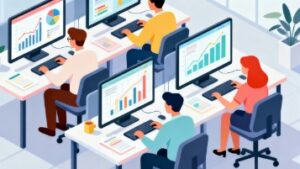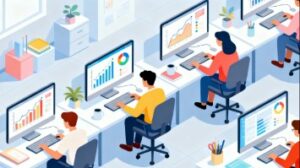 オフィスのデスクでパソコンを使用しながら仕事に取り組む姿を、フラットなタッチで表現したベクターイラストをご紹介します。余計な要素を省いたフラットデザインのイラストは、視認性が高く、ビジネスシーンをシンプルかつ洗練された形で伝えられる点が魅力です。フリー画像・フリー素材として提供しており、商用利用可能のため、企業サイトや採用ページ、社内資料、ブログのアイキャッチ、プレゼンテーション資料など幅広い場面で安心して使用できます。ベクター形式のイラストはサイズ変更に強く、デザイン加工もしやすいため、用途に合わせた編集もしやすい素材です。在宅ワークではなく、オフィスという職場環境で働く様子を表現したいときに最適で、ビジネスシーンの説得力を高める視覚的なサポートとして活用できます。働き方の紹介、業務説明、IT関連の記事など、多様なコンテンツにマッチする汎用性の高いイラストです。