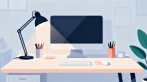 こちらのフラットベクターイラストは、オフィスのデスクでパソコンに向かって仕事をするビジネスパーソンの姿をシンプルかつ洗練されたタッチで描いたフリー素材です。余計な要素を排除したフラットデザインのイラストは、視覚的なノイズが少なく、ビジネス関連の記事や企業ホームページ、自己啓発・キャリアアップのブログなど、さまざまな用途に自然に溶け込みます。フリー画像として利用しやすく、資料、ブログのアイキャッチ、Web広告、SNS投稿などにも幅広く対応できる点が魅力です。