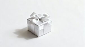 白背景のシンプルな構図は、デザインの幅を広げ、テキストや他の画像とも相性が良く、さまざまな用途に活用できます。プレゼントに関する記事、アクセサリー紹介ページ、ブライダル関連、キャンペーンバナー、季節の贈り物企画など多彩なシーンで活躍し、シルバーのリボンが上品なアクセントとして印象を引き締めます。また、ミニマルでお洒落な世界観を作りたいときにもぴったりで、シンプルながら洗練された雰囲気を演出できます。