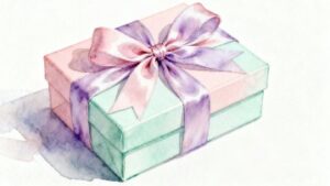 本イラストは、ミニマルデザインの中に「おしゃれさ」と「温もり」を含んだテイストで、女性向けコンテンツやナチュラルテイストのデザインにも自然に溶け込みます。紫のリボンは上品さと落ち着きを演出し、ピンクとグリーンの柔らかな色調は見る人に優しい印象を与えます。贈り物やプレゼントをテーマにしたページはもちろん、ウェディング、母の日、バレンタイン、クリスマスなど、季節を問わず活用できる汎用性の高いイラストです。