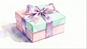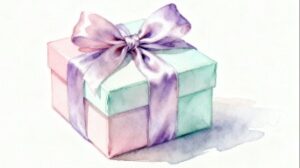 ピンクの箱は可愛らしさを、淡いグリーンのフタはさわやかさを、そして紫のリボンは落ち着いた華やかさを表現しており、さまざまなターゲット層にフィットするデザインです。フラットデザインならではの親しみやすさと視認性の高さがあり、アイキャッチ画像として利用するだけでページの印象を明るくする効果があります。