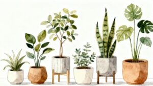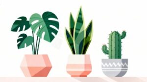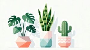白背景に、多肉植物1つと観葉植物2つを組み合わせてシンプルに描いた、フラットデザインのイラスト素材です。装飾を抑えたミニマルなタッチでまとめており、植物たちのやわらかな魅力を丁寧に表現しています。白背景が持つ清潔感と、グリーンを基調とした落ち着いた配色がおしゃれな印象を与え、空間に自然なアクセントを添えるイメージとして幅広いデザインに活かせるフリー素材です。