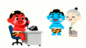 節分シーズンの行事や園内イベントにやさしく取り入れやすい、白背景のイラスト素材です。赤鬼(アカオニ・あかおに・赤おに)と青鬼(アオオニ・あおおに・青おに)、そして福の神(ふくのかみ)が、こどもたちと一緒にボール遊びを楽しんでいる様子を描いています。鬼というと少し怖いイメージを持たれがちですが、本素材では表情や動きを工夫し、ユーモアと親しみやすさを感じられる、おもしろ画像として仕上げています。