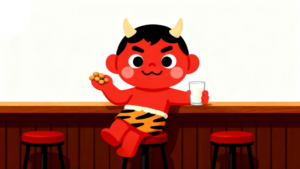 また、優しい表情のアカオニは、保育園・幼稚園・小学校といった教育現場でも扱いやすく、「鬼=怖い存在」というイメージをやわらげたい場面にも適しています。節分の豆まきを楽しい行事として伝えたいときや、行事のおたより、配布資料、イベント告知用のイメージ素材としても活躍します。ユニークでありながら、どこかほっとする赤鬼の存在感が、季節感をやさしく演出してくれます。
