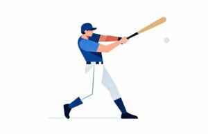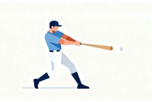 野球の華であるバッティング動作を、わかりやすく視覚化したこのイラストは、技術の説明や競技紹介をサポートする実用的な素材です。白背景・フラットデザイン・無料・商用利用可能という条件が揃っており、野球を扱うコンテンツ制作において非常に使い勝手の良い一枚となっています。