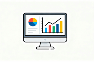 白背景に描かれた、パソコンでデータ分析を進めるビジネスウーマンをテーマにしたフラットデザインのイラスト素材です。シンプルでミニマルなデザインが特徴で、情報量を抑えながらもビジネスシーンの雰囲気をしっかりと伝えられる視覚的魅力があります。白背景のため、画像が主張しすぎず、資料やサイトのデザインにも自然に溶け込み、どんなコンテンツにも汎用的に使用できます。