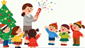このイメージイラストは、クリスマス会のお知らせ、園内掲示、配布プリント、Webサイトの記事やバナーなど、さまざまなシーンで活躍します。子供向けイベントや教育関連コンテンツとの相性が良く、見る人に安心感と親しみを与えるデザインです。白背景のため、文字を重ねたり、他の素材と組み合わせたりしやすく、デザイン初心者の方にも扱いやすい点が特長です。