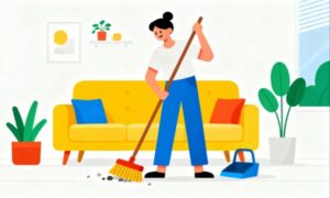 本イラストは無料で使えるフリー画像・フリー素材として提供されており、商用利用可能です。掃除、片付け、水拭きといった日常シーンを表現したイラスト素材を探している方にとって、汎用性が高く使い勝手の良いフラットデザインイラストです。