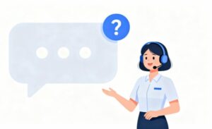 疑問符アイコンが目を引くことで、「質問」「疑問」「サポートへのアクセス」を直感的に伝えられ、ユーザーに対して気軽に問い合わせできる印象を与えます。カスタマー担当者の落ち着いた雰囲気は、サービスやプロダクトに対する安心感を高める効果があり、サイトのサポート体制を印象づけたいときにも適しています。また、AIやテクノロジーを扱うサイトのサポート分野にも親和性が高く、情報の進歩に伴うユーザーの不安をやわらげるイメージとしても機能します。