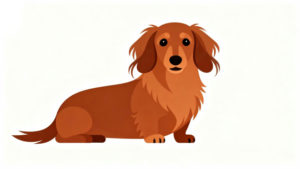 ダックスフンド、ダックスフント、ダックスといった名称で広く親しまれているこの犬種は、ペットとしても非常に人気があります。その中でもカニンヘンは体が小さく、かわいらしい見た目が特徴で、室内飼いのイメージ素材としても使いやすい存在です。このイラストでは、リアルになりすぎないフラットなタッチを採用し、やさしく親しみやすい雰囲気を大切にしています。