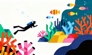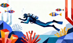 フラットデザインのイラストは、年齢や用途を問わず幅広く利用できるのが特長です。ダイビングをテーマにしたページだけでなく、海に関する知識紹介、レジャー案内、教育向けコンテンツなど、さまざまなシーンで活躍します。シンプルで整ったビジュアルを求める方にとって、使い勝手の良いイメージ素材となっています。