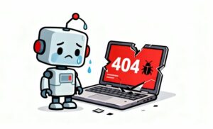白基調の背景が内容を引き立て、フラットデザインの洗練された雰囲気と相まって、現代的で整った印象を与えます。プログラミング、AI、デジタル技術、UI/UXなど、幅広い分野のコンテンツと親和性が高く、技術ブログやITサービスのサポート記事にも活用しやすいフリー画像です。また、ロボットが象徴する“技術の進歩”と、エラーが示す“トラブル”との対比が、ストーリー性のある視覚表現を生み、資料・サイトのアクセントとしても効果的に使えます。