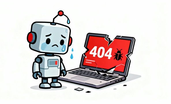 このフリー素材は、無料でダウンロードでき、商用利用可能な点も大きな魅力です。ページの404エラー画面、メンテナンス告知、進歩を妨げるトラブルの象徴、プログラミング教育の教材、AI関連の説明資料など、さまざまな場面に適応できます。フラットなイメージとシンプルな色使いによって、どのレイアウトにも合わせやすく、画像編集もしやすいデザインです。