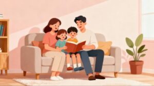 本イラストは無料で利用でき、商用利用可能なフリー素材として提供されています。個人サイトから企業のプロモーションまで幅広く活用でき、家族の絆や温かな時間を伝えたい場面に適したイラスト素材です。見る人の心を和ませ、家族の大切さをそっと伝えてくれる一枚として、さまざまなシーンで役立ちます。