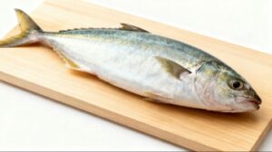 写っている生魚は、表面に自然な艶があり、脂がしっかりとのっていそうな新鮮さが伝わる見た目です。みずみずしい質感や張りのある身は、寿司や刺身、和食全般を連想させ、食欲を刺激するビジュアルとして活用できます。まな板が写り込むことで、調理前のリアルなワンシーンを想起させ、食材紹介や料理関連コンテンツに説得力を持たせます。