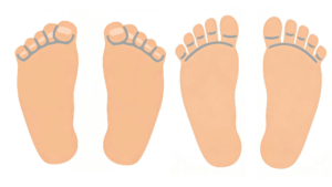このイラストは、健康指導やリハビリテーションの現場において、言葉だけでは伝わりにくい「足指の細かな動き」を直感的に理解してもらうために細部まで計算されています。