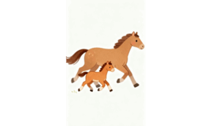 馬の親子が寄り添うように走る姿は、ほのぼのとした安心感や家族の温かさを表現しており、絵本風のかわいいデザインを求める方にもぴったりです。動きのある構図でありながら、柔らかいフォルムで描かれているため、子ども向けコンテンツ、教育関連のデザイン、動物モチーフのイラスト素材として幅広く活躍します。