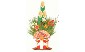 お正月の雰囲気をかわいく、やさしい印象で表現したい方は、ぜひこの馬モチーフ入り門松イラストをご活用ください。