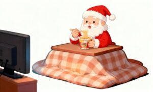 かわいくて面白いクリスマスイラストを探している方、使いやすい白背景のフリー素材をお求めの方に特におすすめです。ぜひこの機会に、ユーモアあふれるサンタクロースの姿を使って、あなたのコンテンツにクリスマスの温かさとワクワク感を添えてみてください。