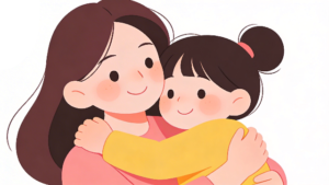 ママに抱きしめられる安心感は、こどもにとって一生の宝物です。このフラットデザインのイラストが、皆様の大切なメッセージを運び、お母さんたちの心に最高の笑顔を咲かせるお手伝いができれば幸いです。