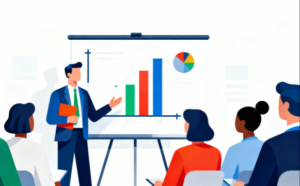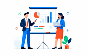 フラットデザインの特性を活かし、シンプルでありながらもビジネスらしい落ち着いた雰囲気があり、読み手の視線を邪魔しないバランスのよいイラストになっています。白背景による清潔感と視認性の高さが、資料の見やすさをさらに引き立てます。スライド資料、ブログ記事、SNS投稿、企業サイトのバナーなど、用途を選ばず利用できる点も魅力です。