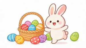 - 文字と組み合わせた「メッセージカード」に:イラストの横に「Happy Easter!」といった欧文フォントや、丸みのある手書き風文字を配置すれば、洗練されたグリーティングカードが簡単に作れます。