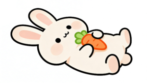 柔らかな毛並みと愛らしい仕草で、私たちの心を解きほぐしてくれる「うさぎ」は、デザインにおいても非常に人気の高いモチーフです。 今回は、大好物のニンジンをぎゅっと抱きしめながら、ゴロンと横になってリラックスしているラビットのフラットデザイン素材をご紹介します。 シンプルな曲線で構成されながらも、うさぎの「安心感」や「満足感」が伝わってくるこのイラストは、Webサイトや掲示物に温かみのある雰囲気を添えてくれるフリー素材です。