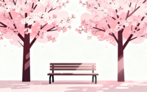 白背景に、キレイに咲いたピンク色の桜とベンチを配置した、春の情景をやさしく表現したフラットデザインの風景イラスト素材です。満開のさくらが持つ華やかさと、ベンチが生み出す落ち着いた雰囲気を組み合わせることで、春らしさと静けさの両方を感じられるイメージに仕上げています。全体を白背景でまとめることで、桜の桃色やピンクの色合いが引き立ち、視認性が高く使いやすいフリー画像となっています。