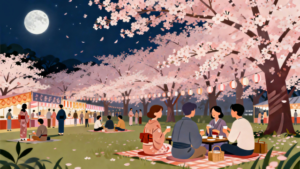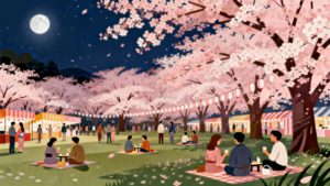 - ライフスタイルブログや観光メディアのアイキャッチに:日本全国のお花見スポット紹介、屋台グルメの食べ歩きガイド、あるいは「春の夜の過ごし方」をテーマにした記事の、魅力的な見出し画像として。