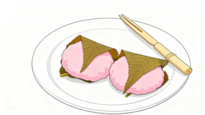 関西風の桜餅は、道明寺粉を使った粒感のある生地が特徴で、春のデザートとして親しまれています。本イラストでは、その魅力をシンプルかつフラットに表現し、リアルすぎず、イメージとして伝わりやすい形にしています。ひなまつり・春・デザートといった季節のテーマをまとめたコンテンツにも最適です。