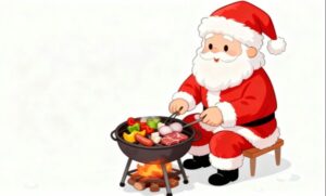 白背景・サンタ・サンタクロース・トナカイ・BBQ・バーベキュー・焼き・クリスマス・イラスト・おもしろ画像・フリー素材・フリー画像 といったSEO向けキーワードを自然に盛り込みながら、幅広いコンテンツ制作に活用できる作品となっています。ぜひ、あなたのwebコンテンツやクリスマス関連ページに取り入れて、季節感とユーモアを表現してみてください。