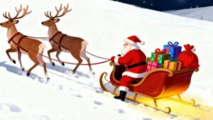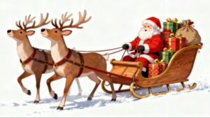 2匹のトナカイが、たくさんのプレゼントを積んだサンタクロースのソリを引いて雪道を進んでいく様子を描いた、クリスマスらしい雰囲気溢れるフラットベクターイラストです。フラットイラスト特有のシンプルで優しい線と親しみやすい色使いが特徴で、大人から子どもまで幅広い層に受け入れられやすいデザインが魅力です。サンタクロース、トナカイ、プレゼント、クリスマスといった世界観が丁寧に表現されており、冬のイベントや季節キャンペーンにも最適です。
