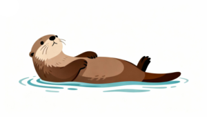 ラッコが手をつなぐ姿は、見た目のかわいらしさだけでなく、実際の生態に基づいた行動としても知られています。海に浮かんで眠る際、潮の流れによって仲間とはぐれてしまわないよう、互いの手をつなぐことがあると言われています。本イラストでは、そんなラッコならではの特徴的な行動をモチーフに、2匹が安心した様子で寄り添いながら浮かんでいるシーンを表現しています。