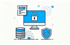 白背景にブルーのクラウドやファイルが配置され、それらをシールドや南京錠の鍵が守る構図で描かれたサイバーセキュリティ系イラスト素材です。ミニマルでシンプルなフラットデザインによって、クラウドデータやファイルを強固にロックし、安全な状態を確保している様子を明確に表現しています。情報保護やオンラインサービスの安全性を伝える際に非常に使いやすいイメージとなっており、資料・ブログ・サイト制作など幅広い用途で活用できます。