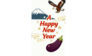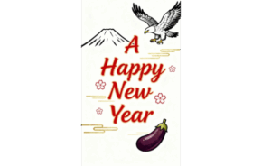 縁起物である一富士二鷹三茄子は「一番良い夢」「運気上昇」「幸運・繁栄」といった意味を持ち、新年にふさわしいテーマとして人気があります。そのシンボルとエレガントな赤文字が組み合わさることで、新春らしい華やかさと日本らしい奥ゆかしさを兼ね備えた魅力的なデザインとなっています。