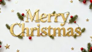 また、このデザインはおもしろイラストとしても応用しやすく、飾りにサンタがぶら下がっているようなユーモアある構図や、トナカイが文字を持ち上げているようなコミカルなシーンにもアレンジできます。クリスマスシーズンのコンテンツ制作に、豪華さと遊び心を兼ね備えた素材をお探しの方に最適のテキストイラストです。
