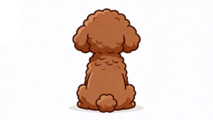 - 「背中にメッセージ」を添えて:トイプードルの背中の上に吹き出しを配置し、「まだかな?」「たのしみ!」といった言葉を添えるだけで、表情豊かな案内キャラクターになります。