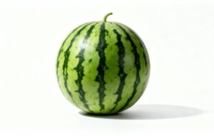 白背景は加工のしやすさに優れており、切り抜きや色調補正、配置調整も簡単に行えます。また、スイカの縞模様や丸みのあるフォルムが美しく写っているため、視覚的にインパクトのあるデザイン制作にも向いています。季節を問わず使える果物写真として、シンプルで清潔感のある素材を求める方にぴったりです。