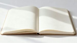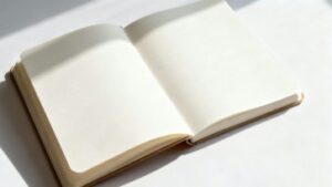 白背景、ノート、真っ白なページという基本的な要素を活かし、自由に編集・アレンジできる写真素材として、ぜひさまざまな場面でご活用ください。