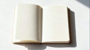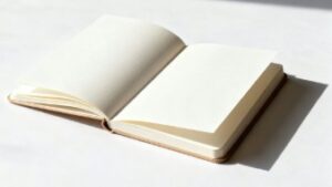 白背景の中に、真っ白なページが開かれたノートを写した、清潔感と汎用性を兼ね備えた写真素材です。背景からノート、ページに至るまで余計な色や要素を排除しているため、全体的に非常にシンプルで、見る人に落ち着いた印象を与えます。装飾を控えた構図は、情報を邪魔せず、主役となる内容を自然に引き立ててくれます。
