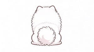 静かにお座りして、未来を見つめるような白いポメラニアンの後ろ姿。その無垢で愛らしい背中は、新しい生活の中で忙しく過ごす皆様の心に、そっと寄り添う癒やしを届けてくれるはずです。このイラストが、子供たちの豊かな感性を刺激し、笑顔あふれる空間作りのお手伝いができれば幸いです。