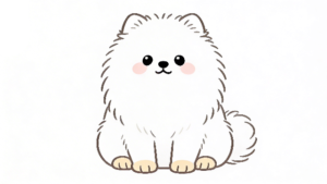 真っ白で柔らかな被毛をまとったポメラニアンは、数ある犬種のなかでも特に気品と愛くるしさを兼ね備えた存在です。今回ご紹介するのは、正面を向いてちょこんとお座りをした、ホワイトカラーのポメラニアンのイラストです。このシンプルで清潔感のあるデザインは、さまざまな媒体において、見る人に「優しさ」や「癒やし」を届けるワンポイントとして非常に重宝します。